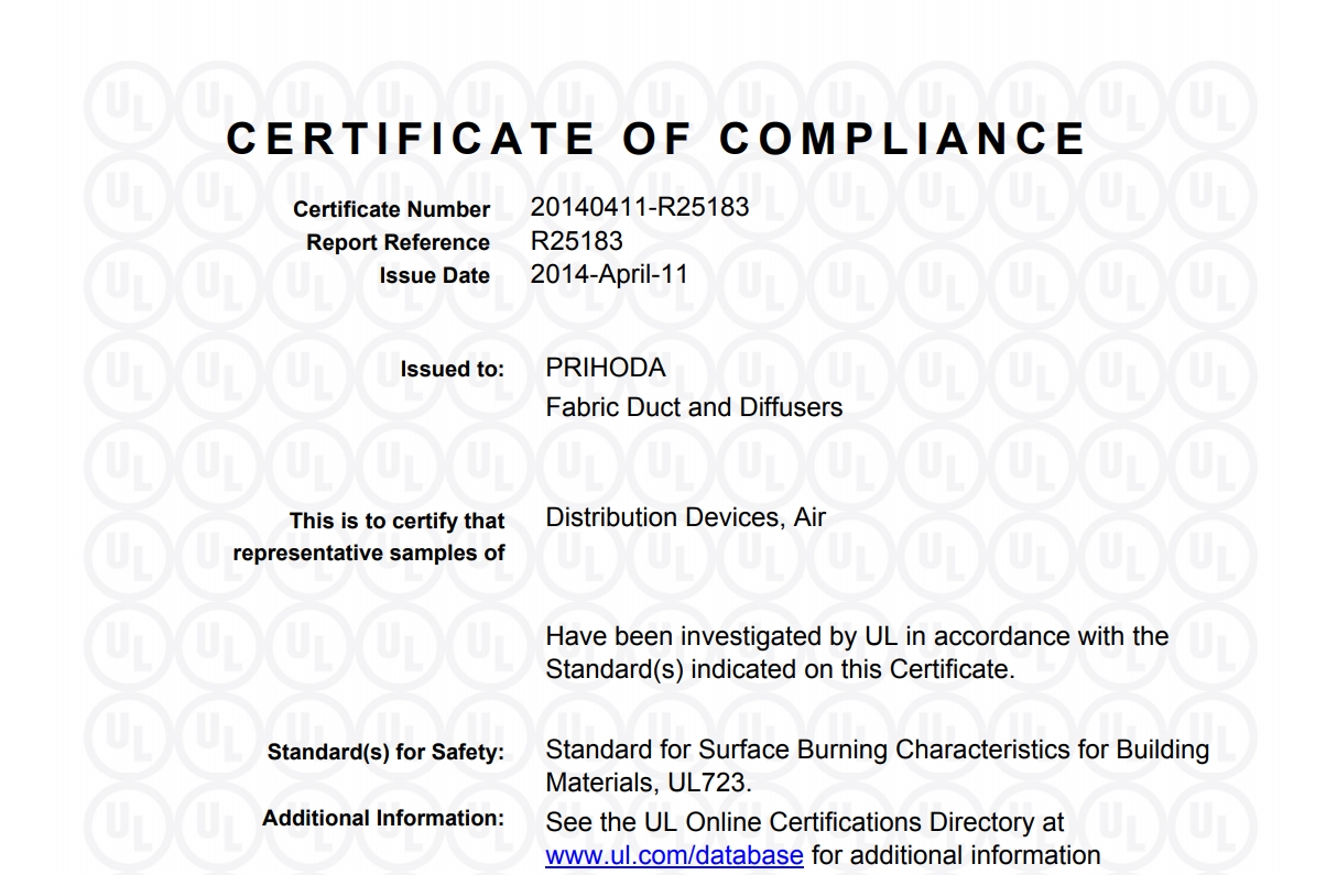 Third-party certification of VOC off-gassing compliance required by CA Dept. of Public Health (CDPH).